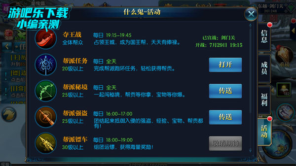 每天12.00-24.00,在镇国大将军领取任务,然后到敌国砍倒敌国帮派的大旗就可以完成任务了,最好和帮派成员一起去,自己一个去挑战难度很大