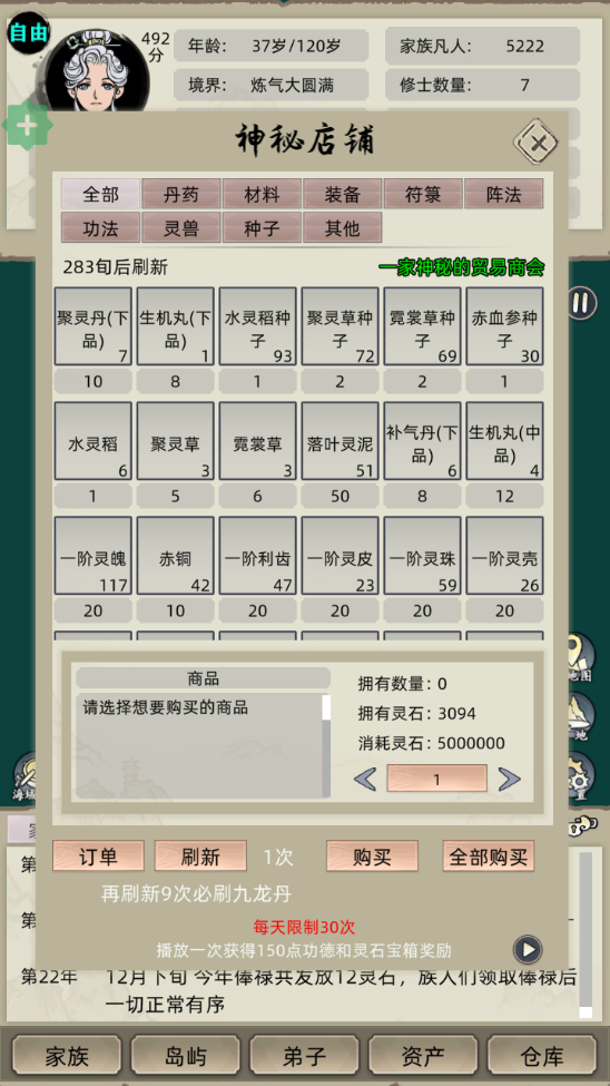 修仙家族模拟器无限功德资源最新版(附物品代码)