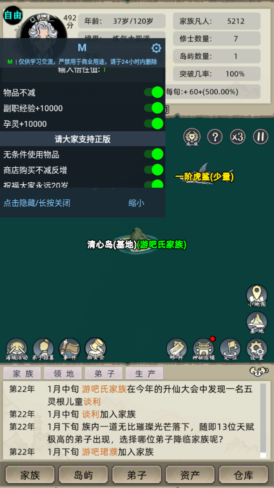 掌指间,兴家族!破解版修仙模拟,物品代码助你培养最强家族! 发表评论