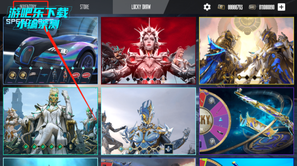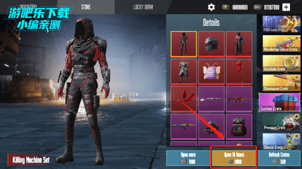 1、下载打开pubg开箱模拟器,进入,找到“store”,点击图示就可以进行十连开箱