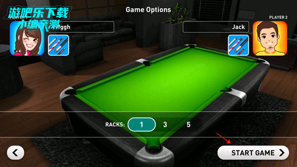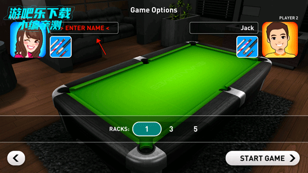 4、输入名字后,点击屏幕右下角的“START GAME”按钮即可开始台球之旅。