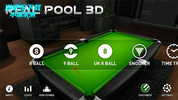 1、打开真实台球3D游戏,加载完成后即可进入主界面,根据个人喜好挑选台球模式开始体验。