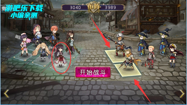 战斗之初可以通过判断分析兵力来判断战力差距,上方布阵左侧为我方兵力也就是总战力刚好过3000多点,而右方则有接近4000战力,战力相差1000只能靠玩家的角色搭配来弥补了。首先说说站位: