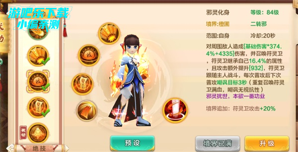 邪灵化身:必带技能!邪符召唤宠物的技能,邪符的技能、气功很多都是围绕宠物来做文章,宠物可以提高角色伤害,且增加角色的生存能力(宠物可嘲讽,可帮角色吸收伤害)。必带!