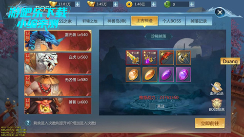 ②、在场景内击杀特定 boss 可触发隐藏 boss“上古神使”,上古神使可掉落整件神器,提升战力必不可少哦;