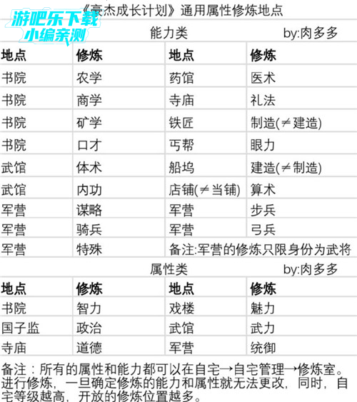 四.各个属性的训练地点