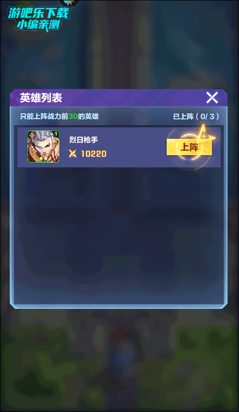 7、现在,在英雄列表中找到并点击“上阵”选项;