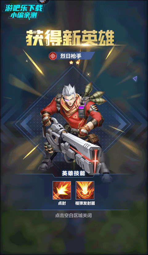 5、在这里,获得了新的英雄,点击空白区域继续;