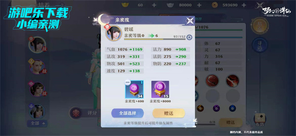 为仙友赠送仙丹可提升仙友的亲密度,亲密度等级提升后,仙友的属性也会得到提升;部分仙友更可通过进阶提升品质,如阿笙、碧瑶等;大家可以无损重置仙友亲密度,返还全部已赠送的仙丹。