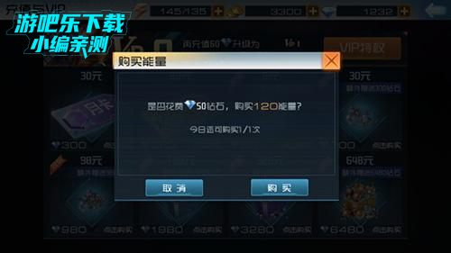 能量实在不够用的战友,可以点击能量后面的“+”,使用50钻石购买120能量。钻石积攒不易,还是不建议大家使用钻石来购买能量,钻石尽量用在其他提升战力的地方。