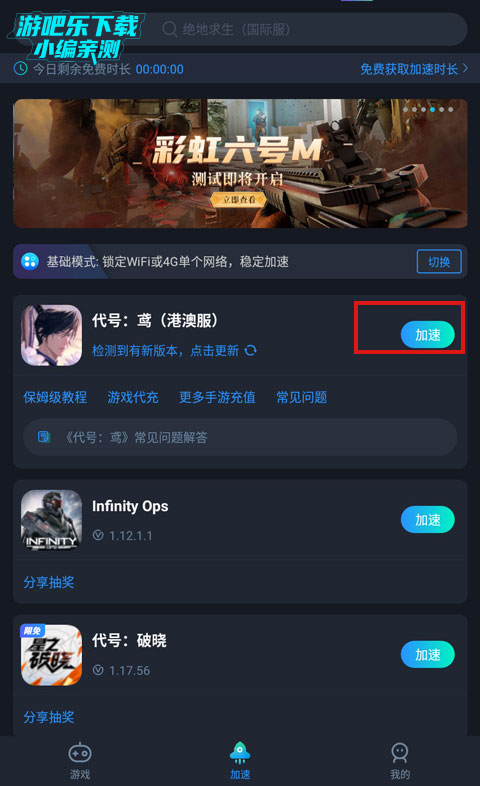 1、首先在本站下载安装代号鸢港澳服,然后打开加速器,在加速器内启动游戏。