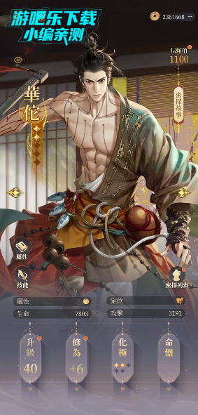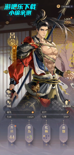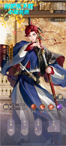 1.从密探属性上看,孙权是一个盾牌角色,是火属性龙盾职业角色,特性是多次攻击与单体爆发,数据面板参考:50级7修为生命值11,410,攻击力983。