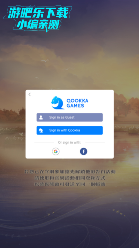 3、加载好后,点击屏幕开始游戏,新玩家需要注册账号或者以游客方式登录。