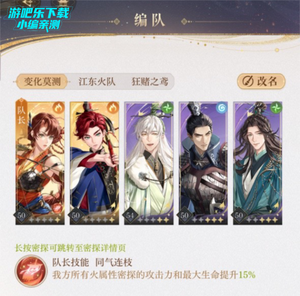 2、陈登和奶妈必须带,剩下三个位置选不被克制属性刖单体,单体一定是要单体爆发伤害高的。