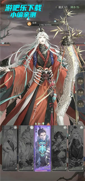 敌方阵容:李催(每3回合会释放强力技能,对我方全体造成高额伤害)