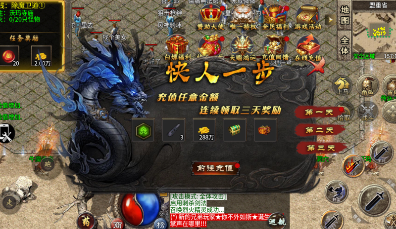 ★全服高爆,攻速为王,每日领取奖励,诸多福利领不停!