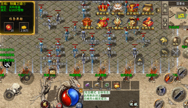 神技与 BUFF 赋能:解锁倚天辟地、护体真气等超级技能,搭配对怪切割、减速、囚禁等特色 BUFF,改变战场格局,打宝与 PK 更具策略性。