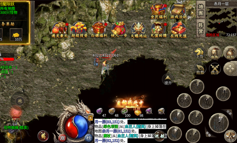 登录直接解锁自动回收、自动拾取功能,告别手动操作繁琐;免费激活赞助特权 + 绝版神器惩戒之剑,攻速拉满,开荒刷怪效率翻倍。每日登录、在线即可领取经验丹、强化材料等奖励;“屠魔证道” 玩法支持击杀任意怪物解锁免费抽奖,极品装备、稀有材料、海量货币抽不停。