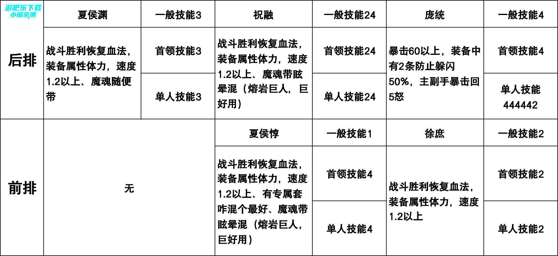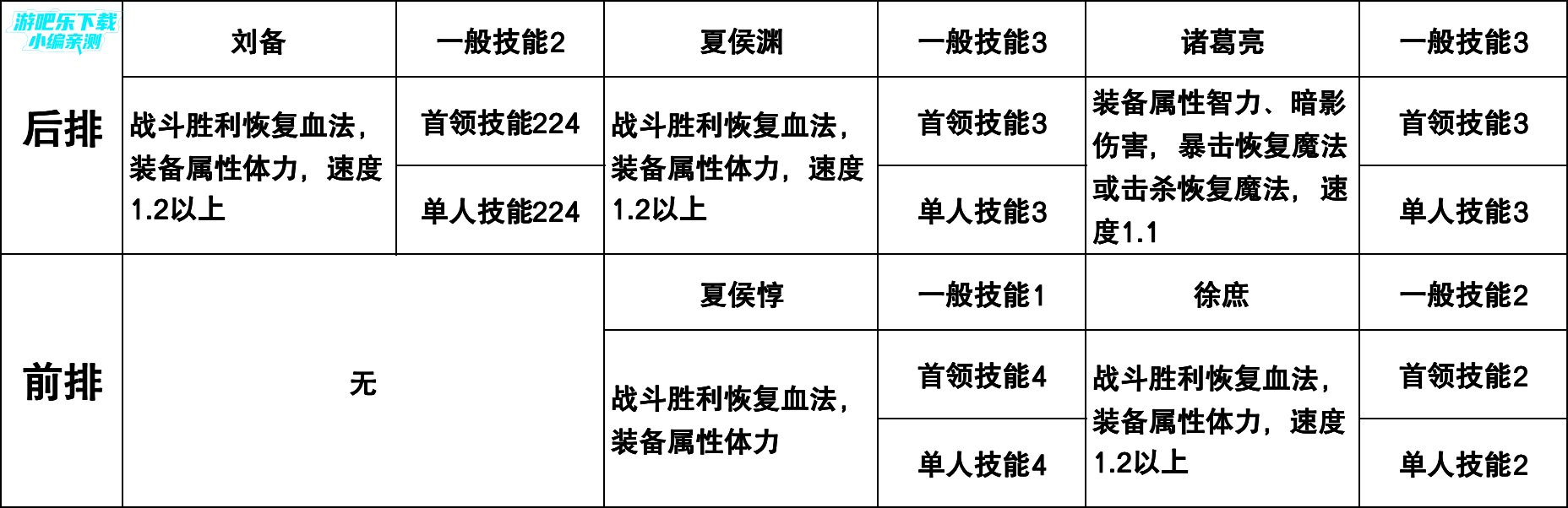 目前主流就一个阵容,体火桶(体-高体力属性、火-火属性伤害+火焰增伤、桶-庞统),由于新手期玩到最后最大的难度就是周目BOSS,打周目BOSS时一定要将地图难度调整到1星,且地图的这个负面属性对你没有伤害或者控制类影响。