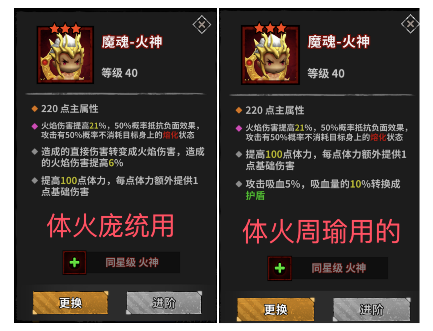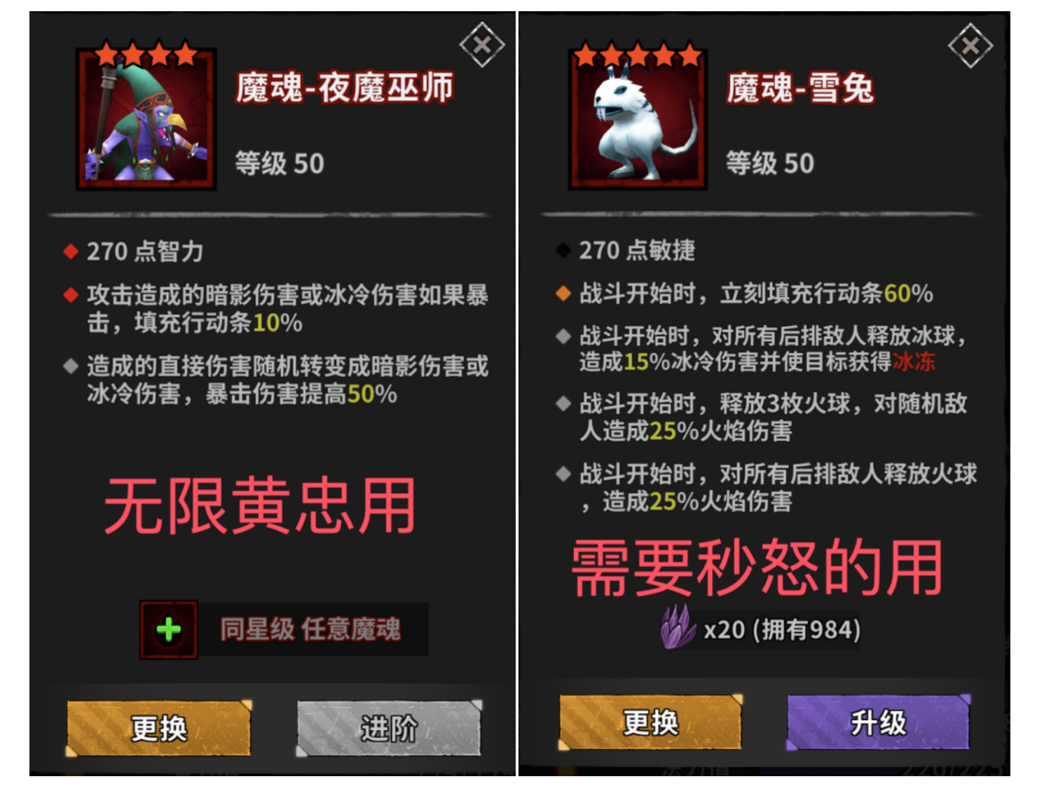 个别需要单一高属性的魔魂,在升1/3/5星时候继续用本体进行升级,这样出来的就是只有主属性,且主属性数值很高。(这种一般很少用到)