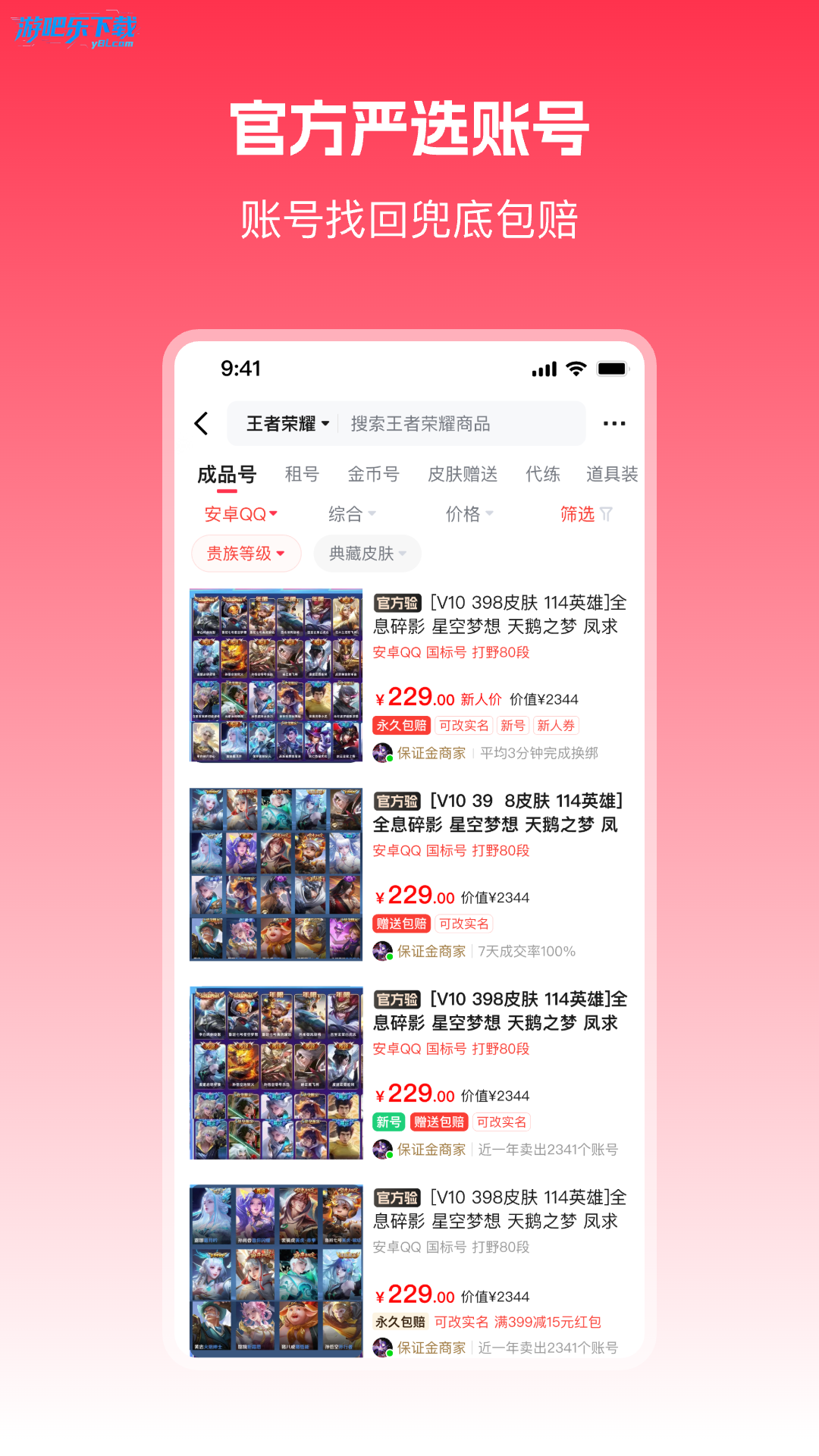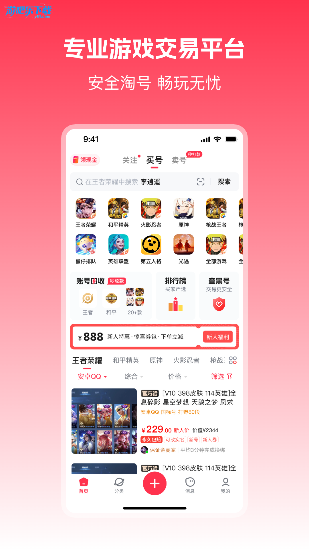 淘号玩app是一款专注于让玩家自由交易游戏账号和虚拟物品的游戏交易平台,用户可以在这个平台上发布自己要出售的商品信息,或者浏览并购买感兴趣的商品信息,平台在交易环节加入了多层次的安全防范措施,确保交易的安全可靠。