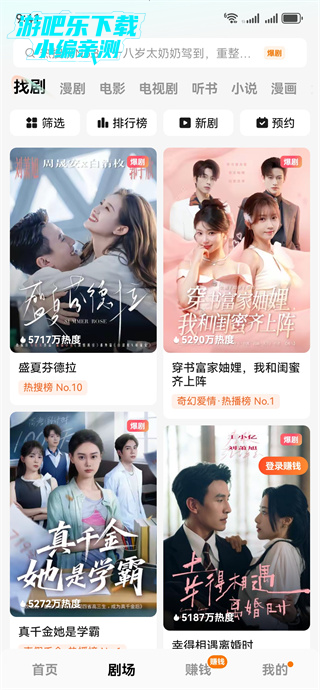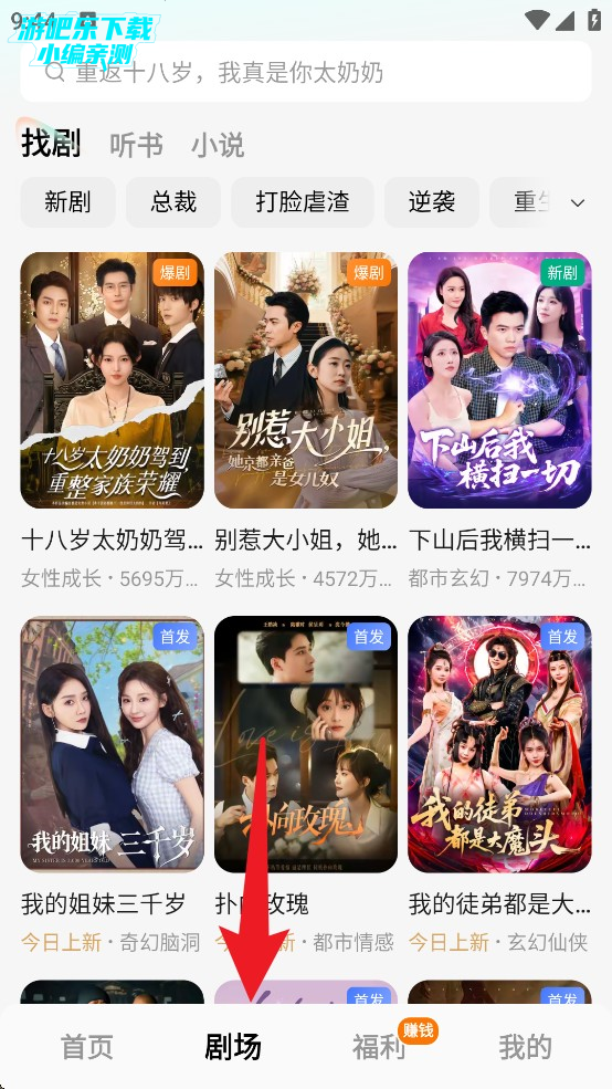 3. 点选底部导航栏的「剧场」页籤,可依分类快速寻找总裁、逆袭、仙侠等类型的短剧。