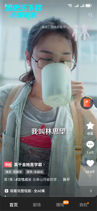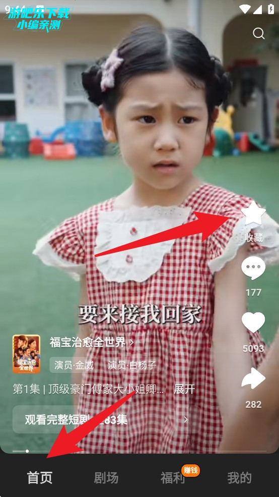 2. 进入首页短剧播放页面,点击右侧的「收藏」按钮,可将喜爱短剧加入个人收藏夹。