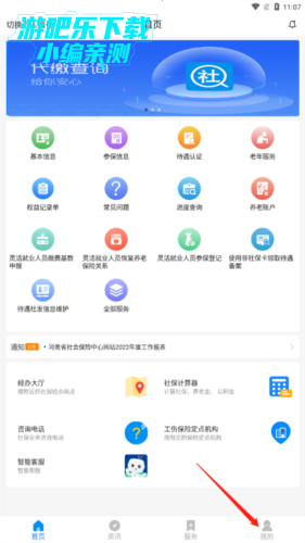 1、在本站下载河南社保App,运行软件,点击“我的”,之后点击注册;