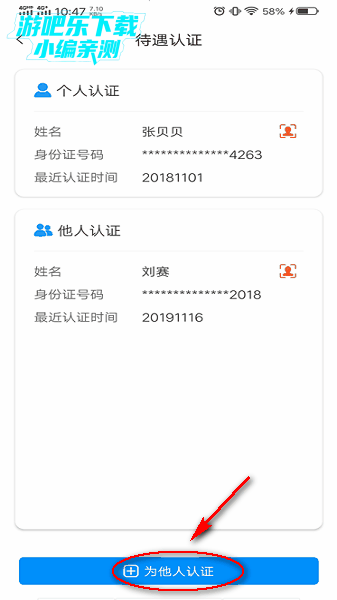 进入“待遇认证”界面后,可以为自己或者他人进行认证,比如点击“为他人认证”;