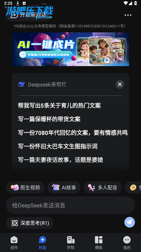 2、点击进来后,然后再选择一键生成自定义动画视频,选择夫妻动画,然后再点击创作作品;