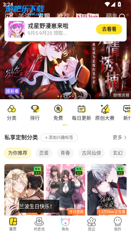 快看漫画是一款备受欢迎的漫画在线阅读应用,该软件涵盖了各种各样的漫画类型,例如日韩、少女、热血、悬疑、耽美、科幻、搞笑、校园等等。每天都有新的漫画上架,可以满足用户不同的漫画阅读需求。