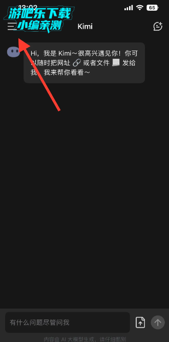 1、打开Kimi智能助手,点击页面左上角的三条横线。