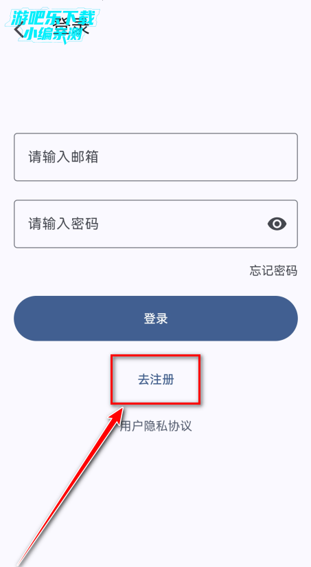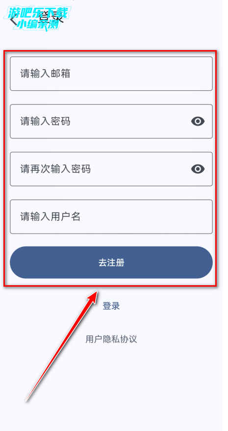 2.请按照软件的要求输入邮箱、密码、再次输入密码、用户名,再点击去注册即可。