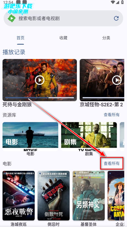 7.如下图所示就会看到有很多的资源,点击电影后面的查看所有。