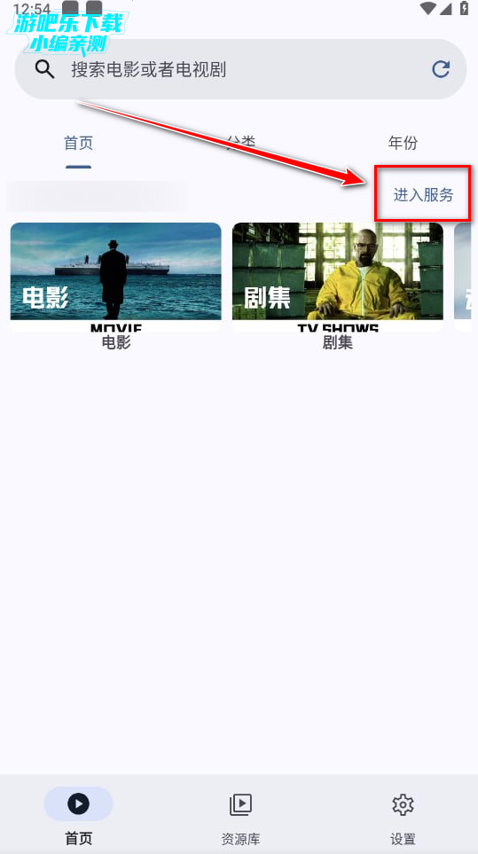 6.等待页面刷新后进入首页,就会看到有电影、剧集等资源,点击进入服务。