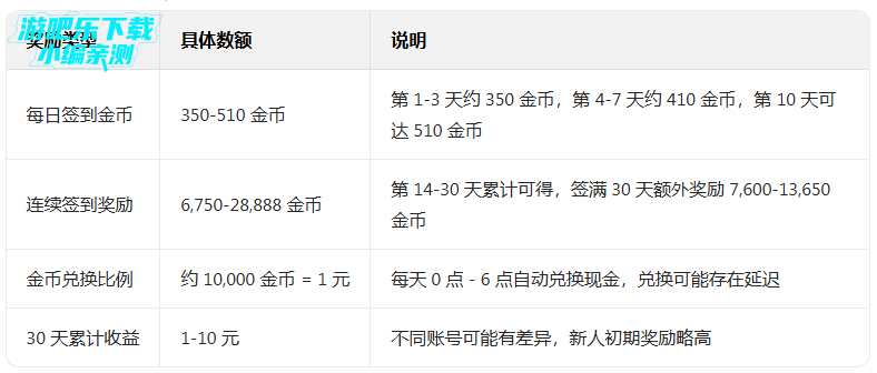 新人连续签到 7 天可得约 4-5 元,连续 14 天奖励更高