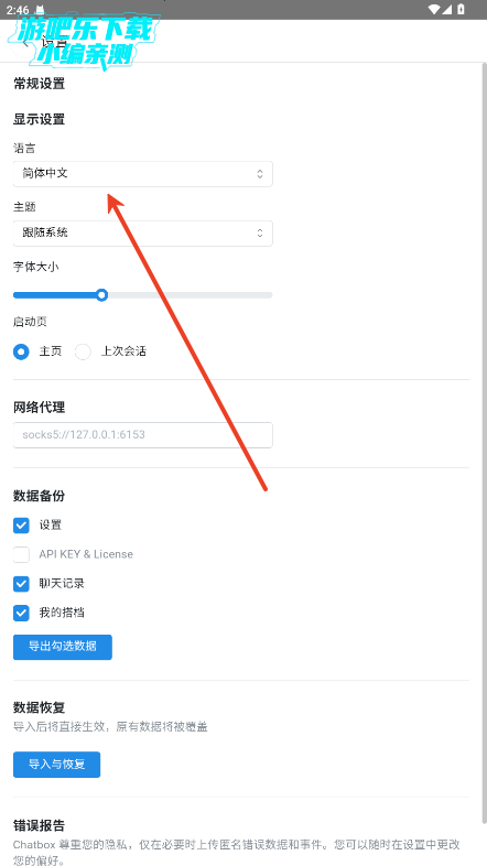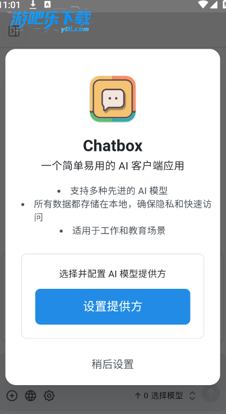 1、第一步:游吧乐官方下载本页下载Chatbox官方apk安装包,打开软件