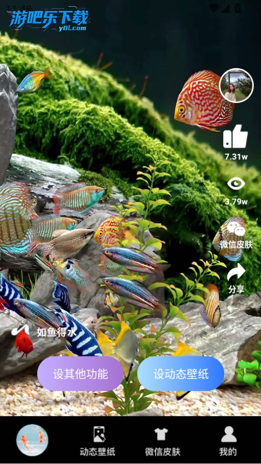 - 非常喜欢这款应用!它提供了多种水下主题和丰富的鱼种选择,而且定期更新新的壁纸资源,让我可以根据心情随时更换桌面风格。把手机变成专属的水族箱,每天都有新鲜感,操作也很简单方便,是美化手机的好帮手。