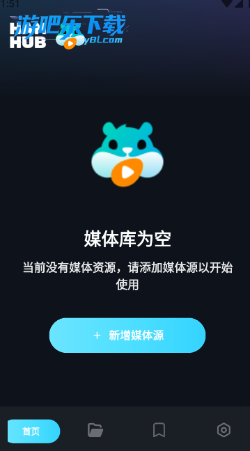 1、首先本站下载安卓Hamhub安卓TV版,安装完成后在app首页选择增加新媒体源。