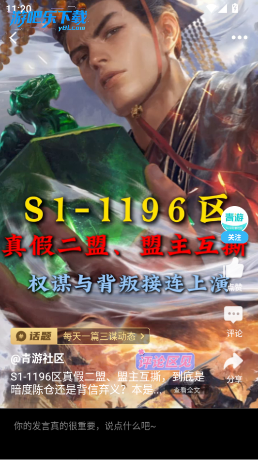 青游社区app官方版是一款专注于 SLG(策略类游戏)的游戏社区软件。青游社区专门为 SLG 游戏玩家打造,提供了专业的交流平台,玩家可以在这里与其他同好交流游戏心得和策略。感兴趣的朋友快来下载试试吧!