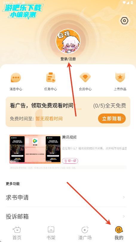 第一步:打开app,点击【我的】,点击【登录/注册】。