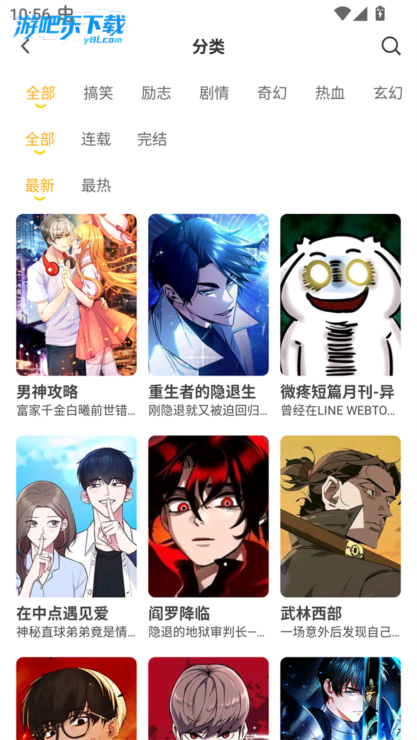 4、分类中则是为用户细分出了各种类型的漫画作品集合。让你可以更加轻松的找到自己喜欢的漫画类型。