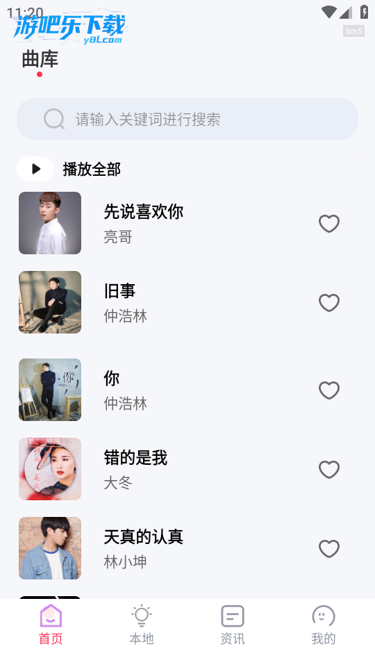点击喜欢的歌曲就可以直接免费听了