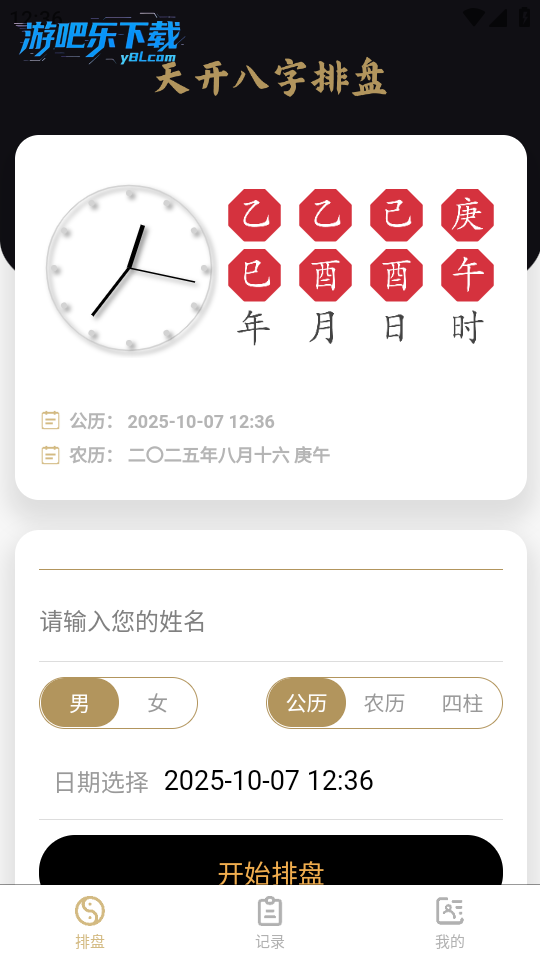下载进入天开八字排盘软件,在这里输入姓名信息进行排盘