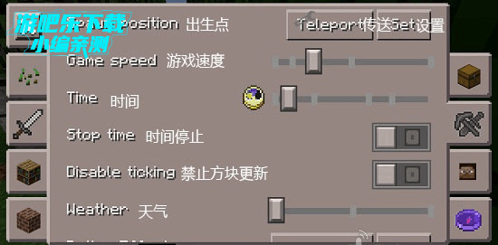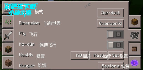 4、设置栏里面提供了各种功能性的修改,比如修改游戏模式,还能直接传送到下界。