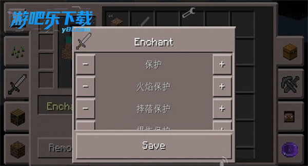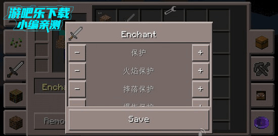 值得一提的是,通过附魔按钮,可以直接为物品进行附魔,无论是武器、工具,甚至是草方块,都能享受到附魔的乐趣。