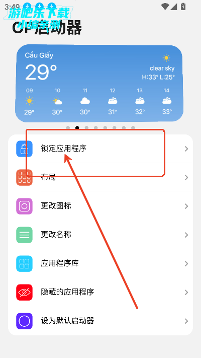 进入首页,点击锁定应用程序