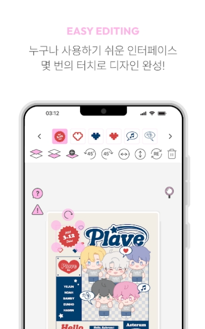 - 对于喜欢DIY的PLAVE粉丝来说,这款应用是绝对的福音。它提供了丰富的官方素材和模板,让设计变得既简单又有趣。我给朋友设计了一个PLAVE主题的定制礼物,她收到后非常感动,说比市面上买的任何周边都更有意义。能将自己的创意融入到偶像周边中,这种体验太棒了!
