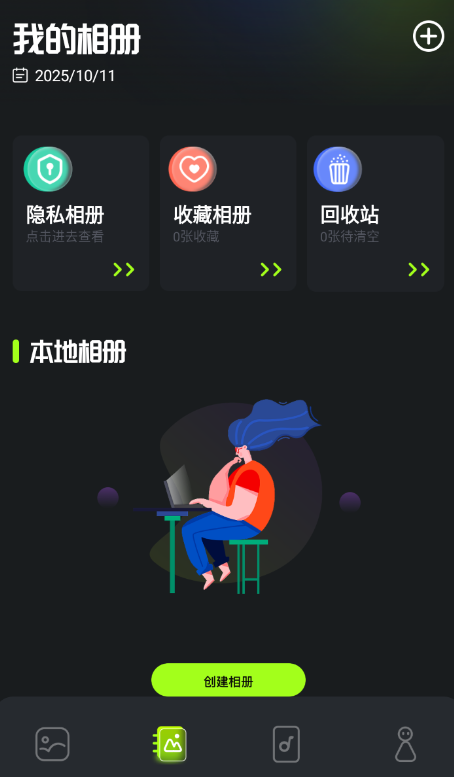2、包含了隐私相册,收藏相册,回收站,本地相册等功能。