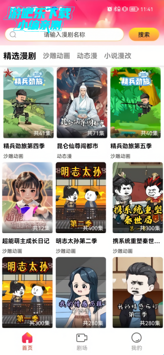 1、在首页中提供了精选漫剧、沙雕动画、动态漫以及小说漫改等漫剧;